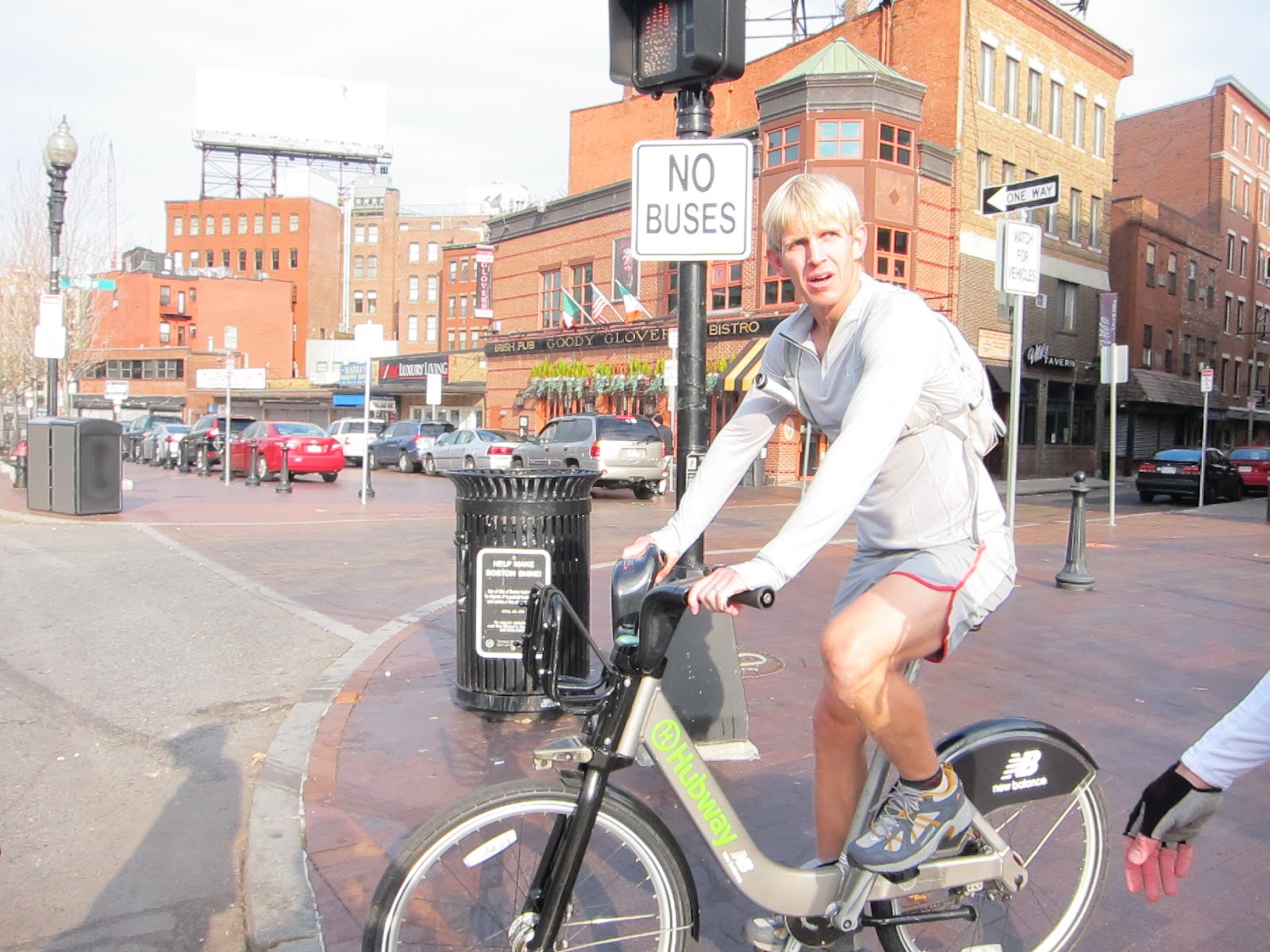 Greg, Christian, Erik, and Peter arrived in Boston to meet Jay who had already arrived and set up our home base at the Marriott Long Wharf Hotel. After settling in and sampling a Malbec, we walked to the Franklin Cafe, grateful to Erik as the designated walker who kept us from being victims of inebriated walking. After an evening of safe walking and sightseeing in Boston, we retired to our small but efficient room at the Long Wharf anxious for the next morning's trail run.